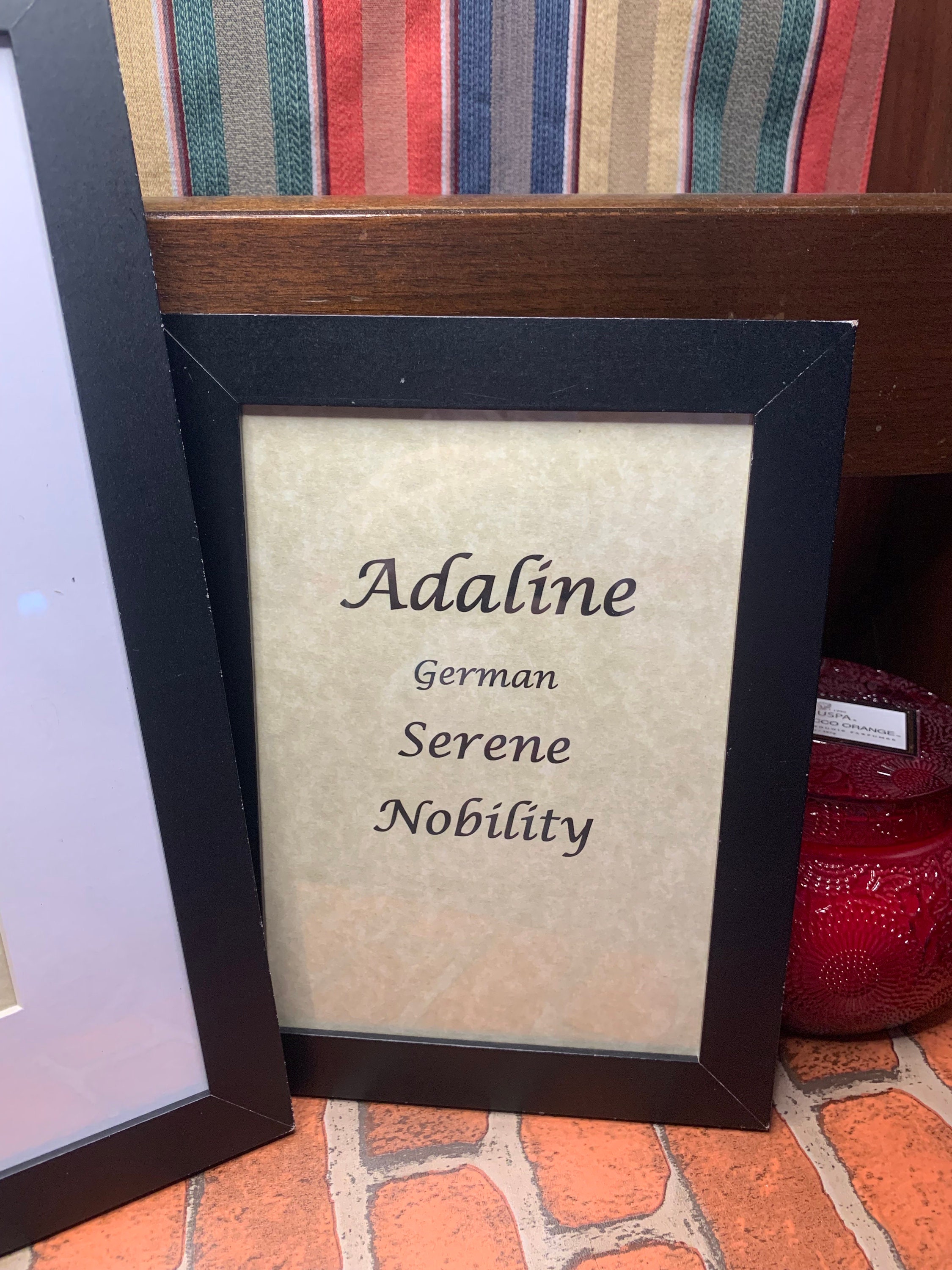 Please NOTE that this name Adaline will have alternative spellings on the drop down choices. Those names will have the same meaning. If your spelling is not on the list please feel free to contact us and we will be sure to add your name to our inventory for you to purchase it.